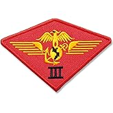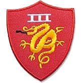 赤い盾の中に描かれた黄色い龍と、上部のローマ数字「III」は、このパッチが第3海兵遠征軍を代表するエンブレムであることを示しています。